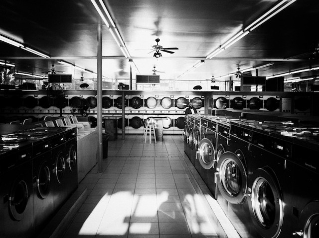 Laundromats always seem abandoned in the mornings, and andertho grabbed this early morning shot of rows and rows of washers and driers in an almost empty laundromat. It takes a minute for your eye to find him (check the larger view), but the smiling man seems thrilled to have the run of the place.
