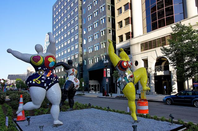The first phase exhibits works by French artist Niki de Saint Phalle, a self-taught sculptor who creates “whimsical yet monumental” sculptures meant to celebrate women, diversity, and love. The 9 to 15 ft. high artworks are fun and colorful, made mostly in a mosaic-style with pieces of colored or mirrored ceramic and glass, and almost make it look like a giant festival is parading down the avenue. The NMWA hasn’t released information yet on which artists will be added as the next phases are completed.
