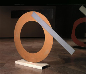 Circles crop up all the time in art, as catch-all symbols for things like union, wholeness and cyclicality. It was the circle that the sculptor David Smith (1906-1965) selected as the sole compositional focus for his works of the early 60s. His Circles I, II and III at the NGA are related: all dated 1962, they’re made of painted steel and each weigh 500 pounds. And yet, they stand alone too, differentiated by color, interior diameter size and by those geometric shapes welded to their sides.