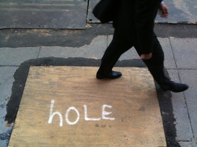 If you like your streets peppered with steel plates and your sidewalks decorated with orange snow fence, cones and plywood hole covers, you’ll love the journey up 18th Street NW between Massachusetts and Florida avenues. Thanks to funding from the American Recovery and Reinvestment act, that stretch of Dupont Circle is currently a bona fide obstacle course, as illustrated by fearless DCist Flickr contributor yospyn.