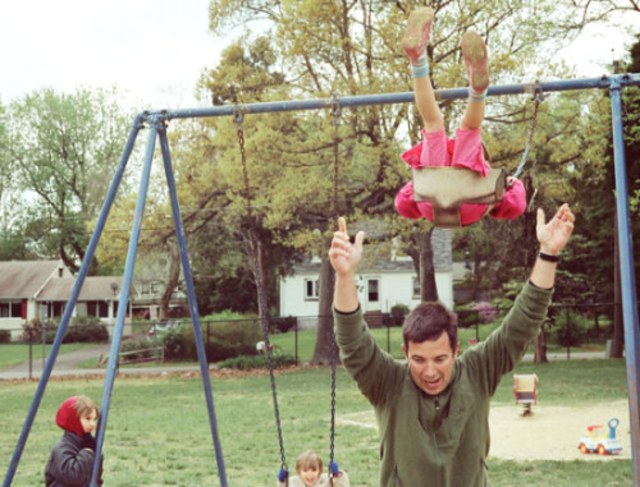 Pushing kids on a swing is a balancing act. You want them to feel the rush of being parallel to the ground, yet you worry that their little hands will let go at the wrong time. This daring technique, captured by Paul Sharratt, looks to be the result of a running start. Decent height is achieved, yet I worry about what happens on the way down. EXIF.