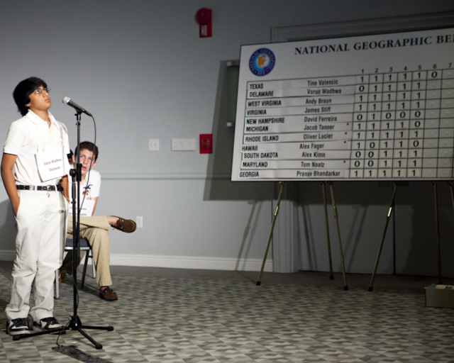 Eighth grader Aadith Moorthy, 13, of Palm Harbor, Fla. claimed top honors in the 2010 National Geographic Bee here in Washington, D.C. this week. But before Moorthy could take home his $25,000 college scholarship and various other prizes, he had to battle it out with 54 other geography-loving semi-finalists, who were then narrowed down to 10 finalists for the big finale on Wednesday. DCist’s photographers were there to capture the action at both rounds.