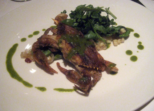 Brabo’s soft-shell crab over corn, ramps, fiddleheads and bacon. Dish of the week: Soft-shell crab