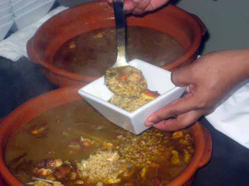At Monday’s opening party for the festival, there was certainly no artificially colored paella to be found. Jaleo chefs were serving up a vegetarian spring vegetable paella with wild mushrooms, a “paella” made with vermicelli noodles and lobster, and a Valencian specialty, arroz caldozo, or “soupy rice.”