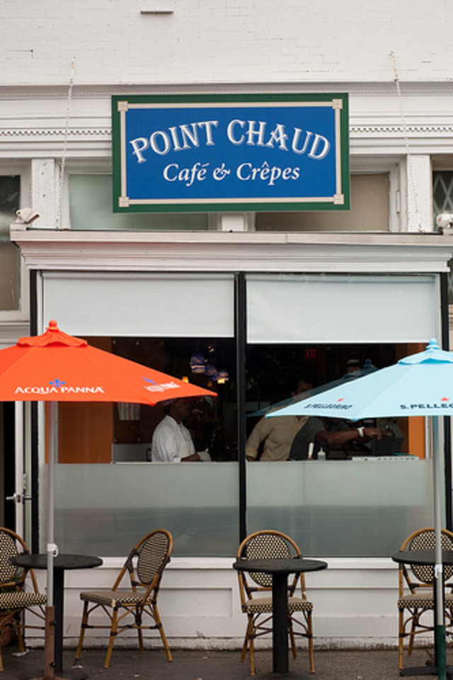 Point Chaud Café & Crepes shed its long hanging “coming soon” sign and officially opened for business on 14th Street NW on Saturday. Can-Can and Moulin Rouge posters dot the simply painted orange and blue walls, and a French bistro CD played in the background. A steady stream of curious customers wandered through to grab seats on the wicker chairs inside the small eatery.
