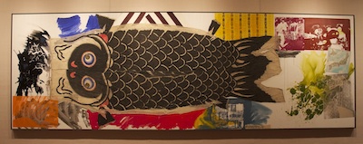 We’re picking him up on his Rauschenberg Overseas Culture Interchange tour (R.O.C.I., pronounced “Rocky”), which kicked off in Mexico City in 1985. R.O.C.I. was an ambitious nonprofit project conceived (and in large part funded) by the artist to create communication with global nations through the language of art. Our work today, Wall-Eyed Carp/ROCI JAPAN (1987), was part of that project.