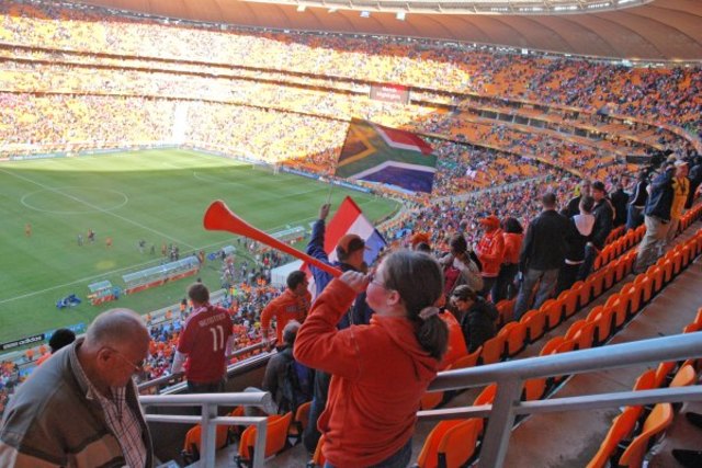 Blow that horn: inside Soccer City on Monday afternoon, after the Netherlands beat Denmark, 2-0. Photo by Austin Danforth.Austin Danforth, reporter with The Alexandria Times, is in South Africa for the World Cup. This is Danforth’s second travel dispatch for DCist from his trip; read his first here.