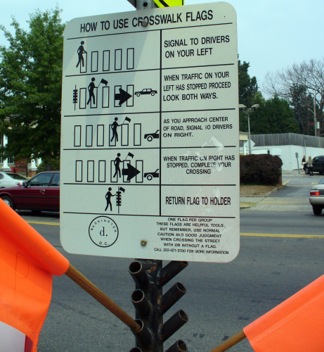Photo by billadler.Cars are frightening things, elephantine pieces of metal on wheels which barrel along at speeds which can obliterate flesh and bones, totally dependent on operators who are easily distracted and are prone to simple human error. That said: has anyone ever felt really comfortable crossing a street, filled with automobiles speeding by, with nothing but a reflective flag and a faith that the shadowy figures behind the windshield will actually stop? Yeah, me neither.