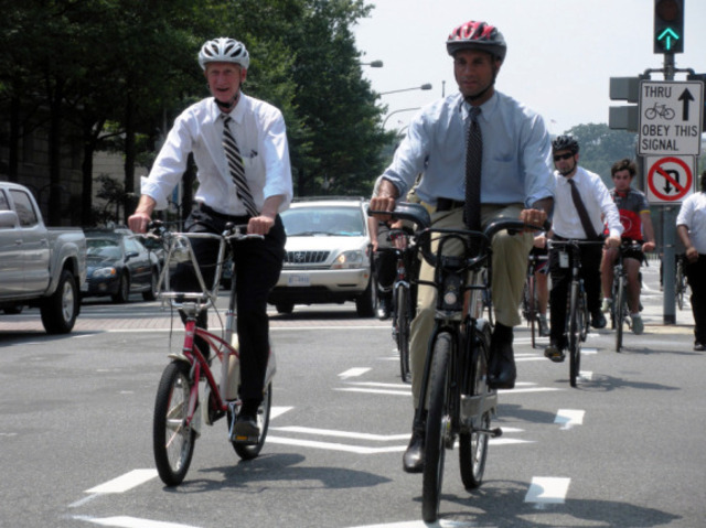 Bikes following lanes and painted arrows, will ride in the same direction of traffic but between the car lanes. Signs alert cyclists to follow the red/yellow/green traffic signals and to turn using crosswalks, following pedestrian signals. It is the latest in a series of bike friendly projects undertaken in the District, including contraflow lanes on 15th Street NW, the extension of the Metropolitan Branch Trail, a Union Station bike center, and a bike sharing program.