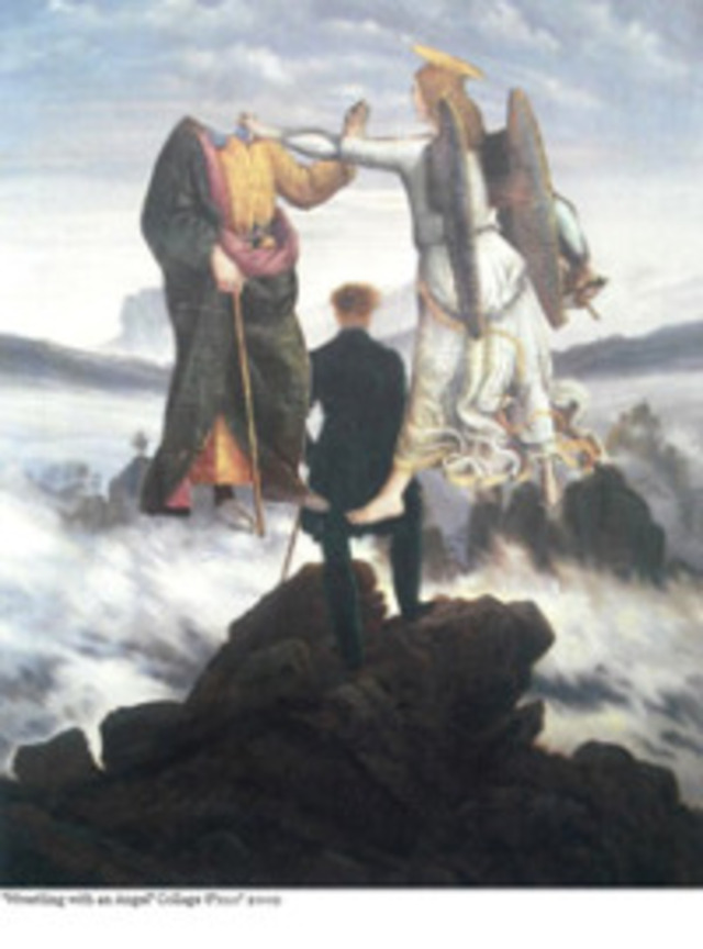 Wrestling with an Angel, Collage, 8″x10″, 2009 by Rachel England, a part of BarterEver since the R.L. Christian Library closed a few years ago, the unique structure stood abandoned and vacant. But on Friday, a temporary store will set up shop in the building. Temporium brings together D.C. fashion designers to sell their wares in this innovative boutique.
