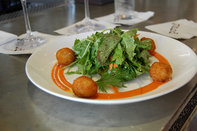 The croquetas from Estadio, which come with salad at Proof.Dish of the Week: Croquetas