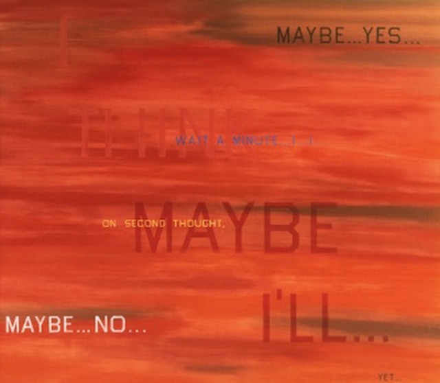 I Think I’ll is the 1983 NGA piece that now hangs in the First Family’s living quarters. It’s a striking, streaky, blood-orange thing that possesses an unusual property: the longer you look at it, the more words and phrases slip up off its surface. There’s “I think maybe I’ll…” in large block letters scaling from top left to bottom right. Other fragments in smaller print (“Maybe… yes…”, “Maybe… no…”, “On second thought”) are scattered here and there. A tiny “Yet” almost drops off the bottom edge.
