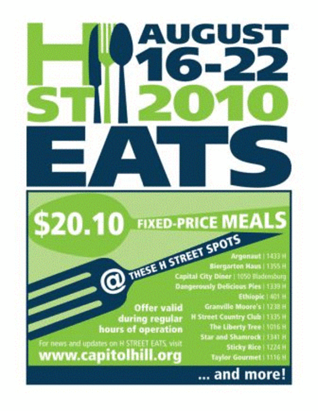 As restaurants across the rest of the city open their doors for Restaurant Week, 11 Northeast eateries will offer dinner for $20.10 a pop between August 16 and 22, via their H Street Eats promotion. And the casual eateries here — bars, diners, and takeout joints among them — will make up for the fact that they’re less expensive to begin with by offering two-for-one deals: yes, you can eat at H Street’s “restaurant week” for $10.05 per person.