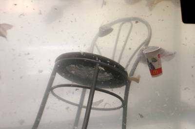 Still of “Flooded McDonald’s” (2009), courtesy of the artists and Peter Blum Gallery, New York. Produced by the Propeller Group in cooperation with The South London Gallery, Louisiana Museum of Modern Art, the Oriel Mostyn Gallery and the Danish Film Institute.There were a few toddlers in attendance when I saw Flooded McDonald’s, the new Black Box video installation at the Hirshhorn, and the kids’ concern at the drowning swirl of McDonaldlandania made me wonder if the experience would scar them for life. Would they be able to chow down on a Happy Meal without thinking of drowning? Would they develop a healthy mistrust of fast food? Might they just switch to Burger King?