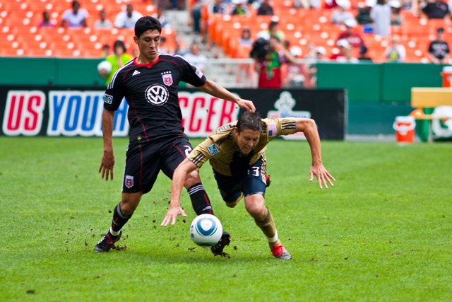 The Union paid dearly for a pair of mistakes which led directly to United goals — the first, a poor clearance by Danny Califf which gifted Allsopp the ball about six yards from goal; the second, a turnover by Kyle Nakazawa which turned to a rapid-fire United counter attack. The weather — just as sloppy as the Union’s errors — played just as much a part in the proceedings, as a torrential rain began to fall shortly after Allsopp’s opener.