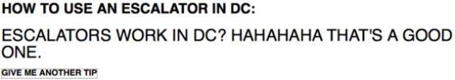 Is this the best website in the city? Simple design, topical, hilarious, perfect for afternoon time-killing: if we’re being honest, we can only think of a few others that would really give How To Use An Escalator In DC a run for its money. Go, click, laugh.