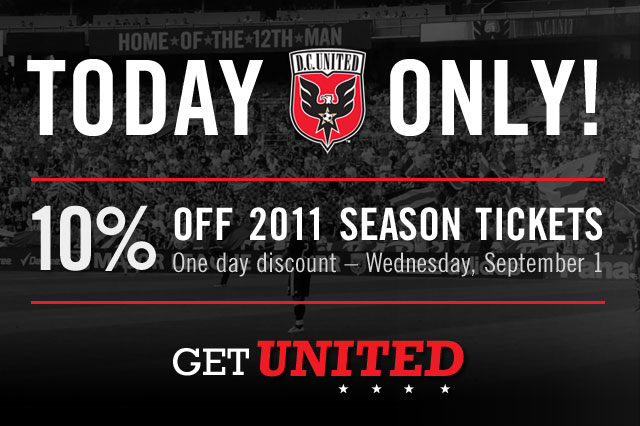 Today only! Save 10% on 2011 D.C. United Season Tickets