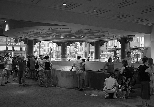 Prince of Petworth dubbed it an “Anti-teen Noise-weapon.” At Greater Greater Washington, Eric Fidler wrote that such “devices are wrong and most likely illegal as well,” adding that the “ethical problem with the device is clear: it purposely aims to annoy and deny equal use of public accommodations to law-abiding people solely on account of their age.” On the Post’s All Opinions are Local page, BeyondDC’s Dan Malouff called the installation of the device “a despicable thing to do,” and said that “[u]ntil the mosquito comes down, I won’t be spending any more of my money at Gallery Place.” TBD’s pedestrian issues reporter Dave Jamieson said that “everybody I saw was somewhat annoyed with it, including older people — heard it just fine…plenty of kids told me they didn’t care.” Even the Washington Post’s impartial reportage on the device featured more quotes from people who think that a police officer stationed at the entrance would do a lot more than the annoying beeps ever could.