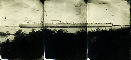 Phil Nesmith, The Nord Sea (Triptych), 2010. Wet collodion photograph on black glass plates. Three 5 x 7 in. plates, courtesy Irvine Contemporary