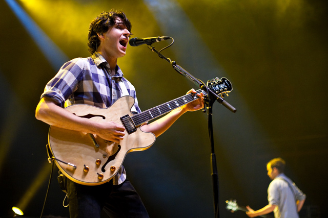 If Bruce Springsteen ever played the D.C. area on September 11, it’s not hard to imagine that it would entail a long, workmanlike set of earnestly anthemic music, plenty of emotional catharsis, and at least a handful of politically-engaged soliloquies between songs. For better or worse, local concert-goers were denied that spectacle this year. Instead, they got Vampire Weekend, the much-hyped indie-rock band that, coincidentally, vowed at a 2008 9:30 Club show to return with enough new material to fuel a marathon set worthy of “The Boss.” Despite having since released a new album, Contra, the NYC-based quartet didn’t quite manage that feat at their show at Constitution Hall earlier this year, nor at Saturday night’s not-quite-sold-out concert at Merriweather Post Pavilion, where adoring fans had to settle for an enjoyable 75-minute performance that included, fittingly, a mid-set cover of Springsteen’s “I’m Goin’ Down.” Singer/guitarist Ezra Koenig kept his banter light, affable, witty, and apolitical, and his band’s music struck similar tones, demonstrating that Vampire Weekend proudly carries the time-honored torch of pop escapism.