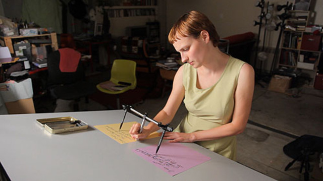Image of “Entanglement” by Julia Oldham, courtesy of G Fine Art“My name is Julia Oldham and I love to anthropomorphize insects,” the artist explains in an interview for New York’s alternative art space Art in General. Oldham’ts older video projects, Churr-Churr and The Timber, are a compilation of successfully jarring performances in which she uses her body to imitate the awkwardly repetitive rituals of insect behavior. The results from these projects aren’t meant to be illustrative in an entomological sense. Rather, they are meant to decontextualize our antagonistic conceptions of insects, and potentially lead us to temporarily re-imagine our relationship with nature. Similarly, Oldham’s current project, Fundamental Constants, on display at G Fine Art through October 16, is meant to decontextualize our relationship with science and scientific discovery, although her approach is a marked departure from the body-centric mechanics of her previous projects.