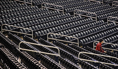 Photo by afagen.There’s been quite a bit of chatter today about last night’s Nationals crowd, a paltry group of 10,999 that was the lowest attendance recorded at a Nationals home game since they relocated to Washington in 2005. Considering that number, it’d be easy to simply take an alarmist stance. But let’s look at some facts. The Nationals aren’t competitive. They were playing Houston, who is also not very competitive. It was a Monday night in September. There was no promotion happening at the stadium. So, yeah, if there was going to be a night where a record low attendance was going to happen, it was probably going to be last night.