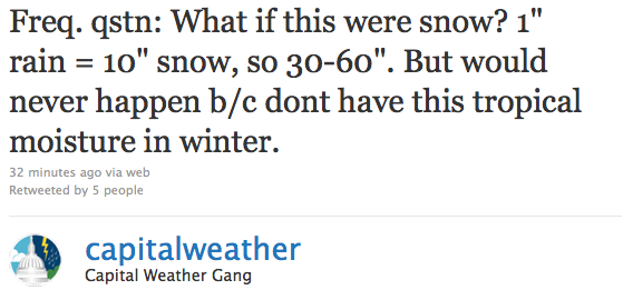 The Capital Weather Gang, using science and all that jazz, went ahead and made the comparison that, for some reason, many people were clamoring for. Go buy bread and milk, people!