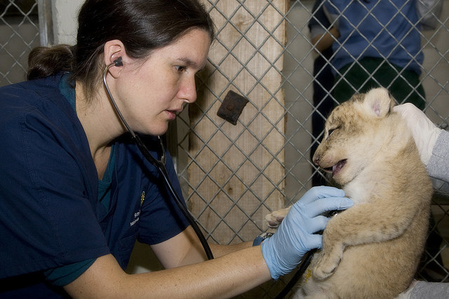 The veterinary team checked the cubs’ mouths and their eyes, listened to their hearts and lungs and felt their bellies, but the animals are still too young to receive vaccines. The cubs weigh between 7 and 8 pounds.