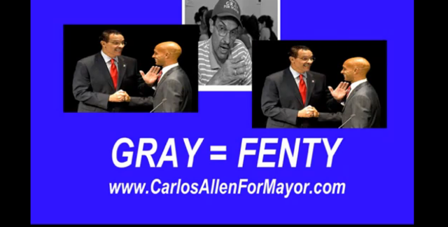 As part of an interview with NBCWashington.com’s P.J. Orvetti (in which Allen stated: “I’m confident I will win this election”), Allen boasted about his newest campaign ad. Over a score that sounds totally ripped off from Goblin, a female voice claims that Vince Gray “opposes” keeping black people in D.C., blames Gray for a 26 percent decrease in D.C.’s black population over the past twenty years and states that “GRAY=FENTY.”