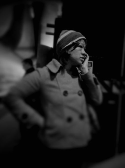 Who among us hasn’t taken an exasperating phone call while waiting for the bus or Metro? DC Metro People heightens the drama of such a moment with deliberate focus to draw attention and emphasize emotion. (EXIF.)