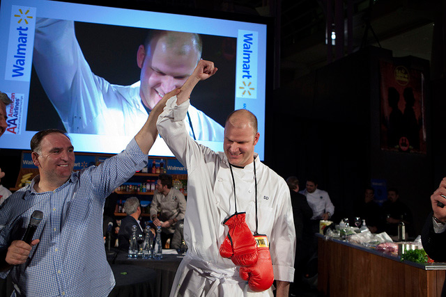 The Source‘s Scott Drewno came out on top at D.C. Central Kitchen’s 7th annual Capital Food Fight, which took place last night at the Ronald Reagan Building. The Fight pitted Chefs Victor Albisu (BLT Steak), Will Artley (Evening Star Cafe), Spike Mendelsohn (Good Stuff Eatery and We, the Pizza) and Drewno against each other in an Iron Chef-style cooking competition.