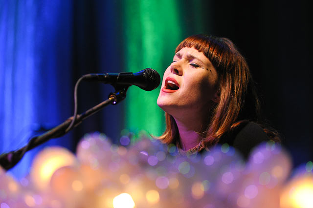 Entering to crashing thunder, under clouds that looked suspiciously like pillows and lightning bolts that could have been made from cardboard, the set was a delightful contrast of punkish rage and girlish sentiment, the clever middle ground that so many wish to strike. Speaking to her fans, her English lilt offered politeness, but each number, with its volume and conviction, gave a sense that she wanted to tear you apart. Well, almost each number.
