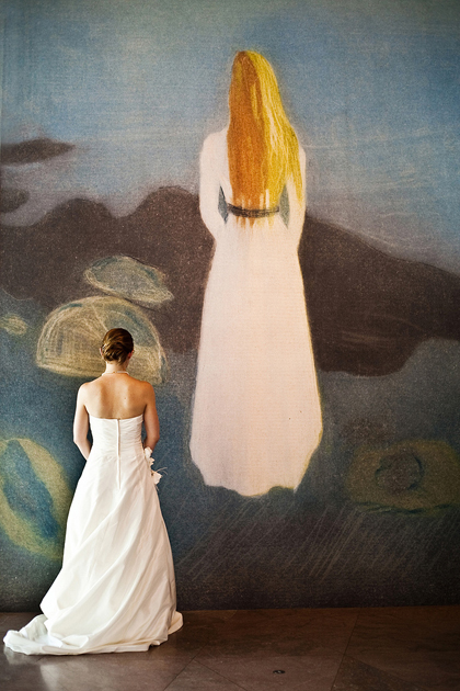 Lots of interesting pictures are taken in the museums in this city. Ccandumplins provides a great example with this portrait of a woman wearing a white dress against a similar background. (EXIF.)