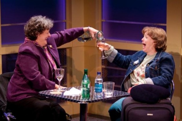But in National Airport one dark and stormy night, they’re forced to do just that. In this world premiere by playwright Joe Calarco, all flights are grounded, and there’s just one seat left in an airport lounge for Patty (Sherri L. Edelen), a brash, conservative, deep-fried southern momma waiting on a flight to London where she had grand plans to see The Lion King on the West End. That seat just happens to be at a table next to Margaret (Nancy Robinette), a slightly neurotic, matronly East Coast liberal with a Kennedy obsession.