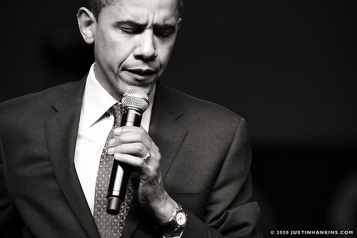 Photo by Hankins.Ouch. The President was playing some post-Turkey day basketball at Fort McNair yesterday when a player hit him with an elbow to the face. Rey Decerega, the opposing player, turned to take a shot and his elbow hit Obama in the mouth. Decerega works for the Congressional Hispanic Caucus Institute. Obama needed 12 stitches, mostly on his lips, following the foul. He was given a local anesthetic for the procedure. 12 stitches sounded like a lot to me, but a spokesperson said the doctor used a smaller filament that requires more stitches but makes them tighter, meaning Obama will have smaller scar.