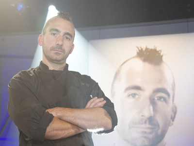 Courtesy of Food NetworkWhen it comes to sacrificial lambs, Chef RJ Cooper doesn’t fit the mold of “easy prey.” But tonight at 10 p.m., Cooper will be the first challenger to go up against the Food Network’s newest Iron Chef, Chef Marc Forgione. After winning the third season of the reality contest The Next Iron Chef, Forgione, specializing in modern American cuisine, now joins six other Iron Chefs in Kitchen Stadium. Unfortunately, “Iron Chef modern American” sounds a bit lame, so let’s just call him Iron Chef Mohawk.