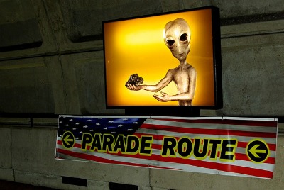 The alien parade is this way. Photo by philliefan_99.I don’t know about you, but I’m having flashbacks to October 2009, when the media went nuts about NASA “bombing” the moon. This week, it’s all about an innocent little press release they sent out announcing a press conference — they probably have one or two press conferences a week. Now, NASA sends out a press release when someone in Huntsville coughs in their cleansuit, so that everyone stopped fast when reading this one little line in our inboxes says something in itself — I admit it made me double-take, and I’m among those who delete most of these releases after glancing at the subject heading. That line?