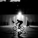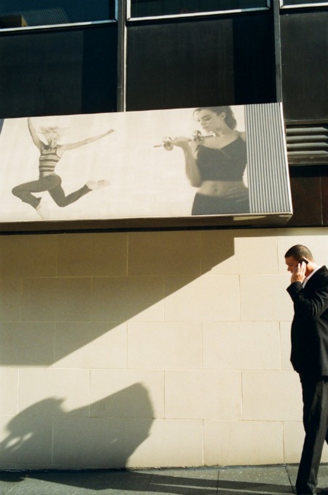 Sometimes the line between what’s real and not real can be hard to find. While the break in this composition by Bogotron is obvious, the monochrome colors, solitary figures, geometric patterns and film treatment, make it only just.