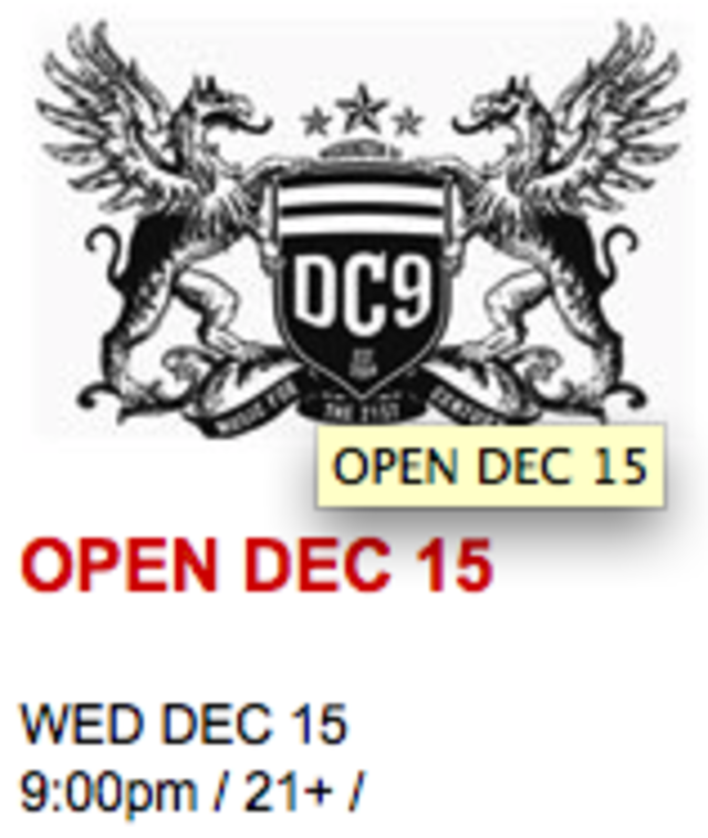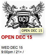 A quick peek at DC9’s website this afternoon reveals that the club is indeed planning to be open on December 15, the first day it will be allowed to conduct business since being shut down after the death of Ali Ahmed Mohammed on October 15. In a hearing on December 1, the District’s Alcohol Control Board ruled that the club could reopen after hearing about new security installations and instituting some special conditions on the club’s staff.