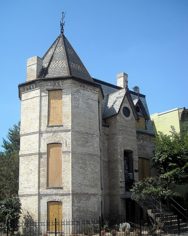 1800 Vermont Avenue, pictured in 2008, has now been renovated back into a private home. It’s quite a beautiful house with decorative brickwork and a gable roof. The building features a decorative stone on the corner tower with the date 1879, the year the house was built, on it.