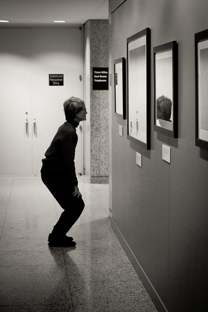 Are you trying to shed those extra holiday pounds? Are you fearful that your gym will be loaded with newbies today attempting to keep a New Year’s resolution? You should try the new museum exercise craze that ep_jhu discovered, art squatting. You can exercise your brain and butt muscles at the same time, and you don’t even need special round shoes. It is the greatest museum workout since art jumping.