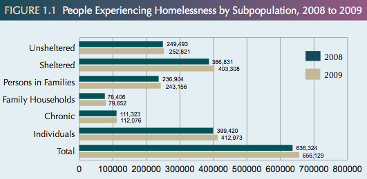 Yesterday, the National Alliance to End Homelessness released its annual report on the State of Homelessness in America — and the news for the District and the country as a whole is not good. According to the study, D.C. joined 31 states which experienced an increase in its overall homeless population. Meanwhile, the homeless population in the United States rose by 20,000 people between 2008 and 2009, a three percent increase. Additionally, an uptick in the number of chronically homeless individuals is the first recorded by the Alliance after that figure had decreased every year between 2005 and 2008. According to the Alliance, four out of every ten homeless people in the United States were living “on the street, in a car, or in another place not intended for human habitation.”