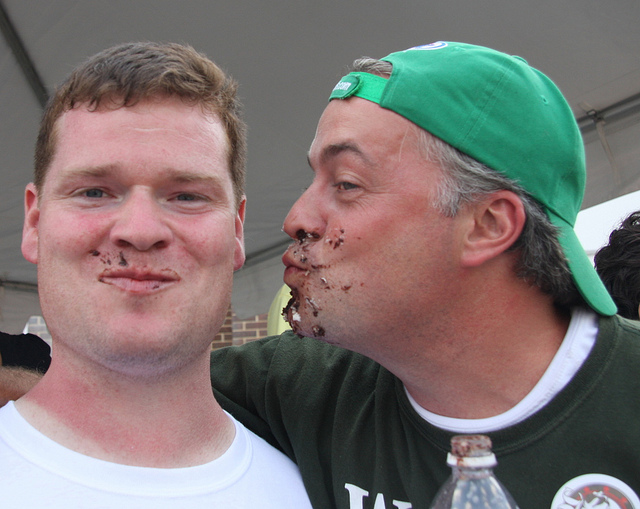 Patrick Mara (left) and Bryan Weaver. Photo by Robert Hernandez, courtesy squidpants.Talk about crossing the aisle. This photograph, captured last August during the Columbia Heights Day festival at Harriet Tubman Elementary School, features recently announced At-Large Council candidates Patrick Mara, a Republican, and Bryan Weaver, a Democrat, posing after competing in the event’s cupcake eating contest. Your editor was in attendance for the contest (emceed by Adrian Fenty, who looked downright disgusted at the whole spectacle — and can attest that both men were relentless in their pursuit of glory.