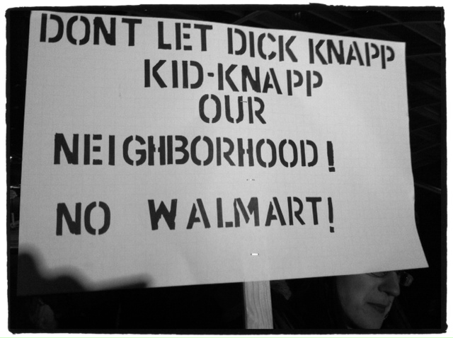 On the same day that Walmart’s PR efforts got a huge boost from First Lady Michelle Obama’s endorsement of the company’s plan to sell healthier foods, 25 people affiliated with the group Walmart-Free D.C. peacefully gathered to protest the arrival of four — possibly even five — outlets of the retail behemoth in the District. But instead of demonstrating at one of the possible Walmart locations or making their opinions known to members of the D.C. Council, the protesters descended on the Woodley Park home of Dick Knapp, an executive at Foulger-Pratt, the company that is set to develop the Georgia Avenue Walmart.