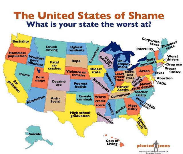 Actually, I had to leave DC out because they were the absolute WORST at so many things (it would have left fewer things to assign to other states). Basically, they have the highest rate of murder, drug use, crime and much more.