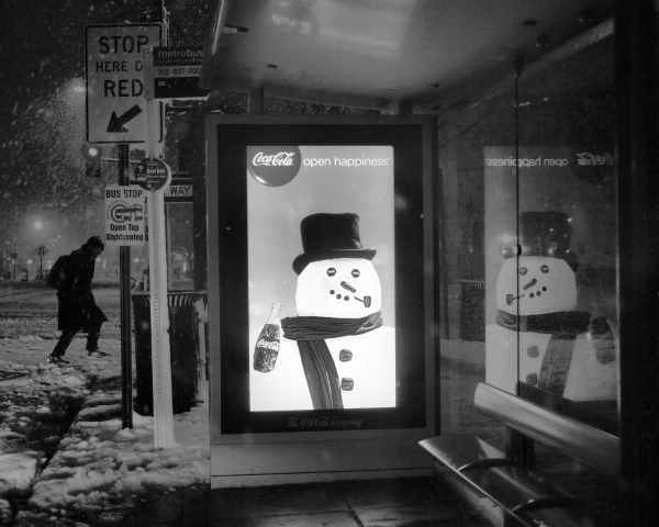 Karon photographed this ironic bus stop during the heavy snow Wednesday, pointing out the discontinuation of bus service at 9 p.m. that evening. It’s an appropriate shot as many continue to play armchair quarterback with Wednesday’s storm. (EXIF.)