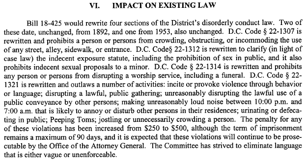 The impact on the current city noise regulations are outlined in the notes from the Committee on Public Safety and the Judiciary (PDF), which Mendelson chairs: