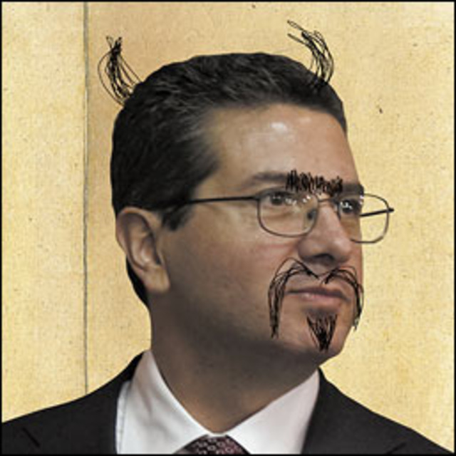 To their credit, City Paper is not backing down from Snyder’s bullying. Managing editor Mike Madden, who is Jewish, did a nice job of summarily shooting down Snyder’s claims of anti-Semitism. Snyder’s PR team reportedly asked a dean from the Simon Wiesenthal Center in Los Angeles to claim that the illustration accompanying the piece — which featured a photo of Snyder with horns and a mustache drawn on it — was “associated with virulent anti-Semitism going back to the Middle Ages, deployed by the genocidal Nazi regime, by Soviet propagandists and even in 2011 by those who still seek to demonize Jews.” Madden retorted: “The image of Snyder doesn’t look like an “anti-Semitic caricature”—it looks like a devil.”