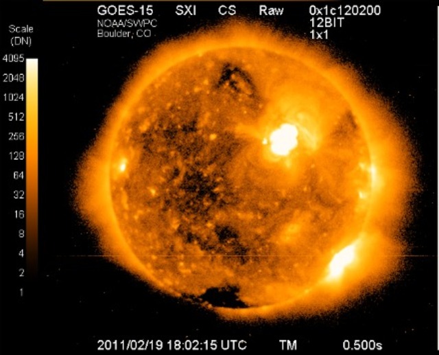 Photo by Space Weather Prediction CenterThe Earth is safe, for now. Although our little solar heat-lamp didn’t go ‘nova and swallow up in a fiery tsunami, the last disruptions from this past week’s solar flare will be dissipating this weekend. NOAA’s Space Weather Prediction Center predicts that as result of the flare, also known as the snicker-inducing coronal mass ejections, solar winds could cause shortwave disruptions to communications and power grids. On the other hand, maybe this astro-burp will give us an small chance to look up from our iPhones to see auroras in our skies. The SWPC gives us a less than coin-flip chance, 30%, of seeing auroras as far south as D.C. At our latitude, the sun would have to emit a major solar event for us to see anything. At that point, news headlines will be preoccupied with blackouts, damaged satellites and outages. Most likely, our northern and European counterparts will reap the benefits of the Northern Lights. Has anyone in our area seen, or photographed, anything yet?