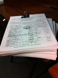 Saturday marked the start of a 10-day challenge period, during which residents are allowed to inspect any and all of the nominating petitions turned in by candidates for irregularities that could disqualify certain signatures and potentially knock candidates off of the ballot. Any D.C. resident can truck on down to the Board of Elections and Ethics — and yes, the office is open today, with BOEE workers being allowed to take the mandatory furlough day at another point during the year — request any of the nominating petitions and go through the painstaking process of checking signatures against information in the D.C. voter registry. In the brief visit I made to BOEE this morning, I checked a few of Biddle’s signatures against information in the registry, and everything seemed to come up clean.